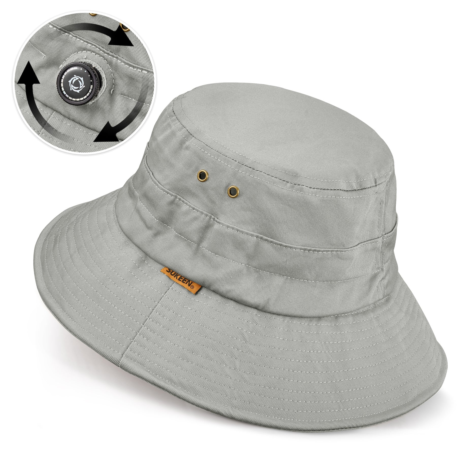 - Adjustable Knob: This adjustable hat comes with an adjustable knob. Place the knob on the right (or left) side of your head, press the knob and turn it forward clockwise (backward counterclockwise) to tighten the headband, and pull the knob up to reset the elasticity of the headband. This design hides the drawstring of the headband and makes this wide brim hat look very neat.
