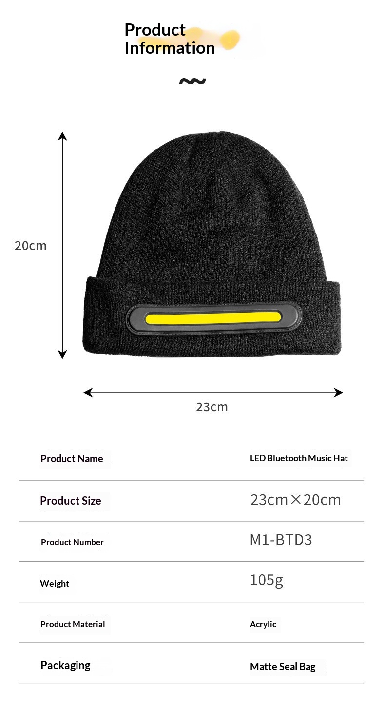 Color: M1-BTD3-White Light Bluetooth Hat - Black, M1-BTD3-White Light Bluetooth Hat - Navy