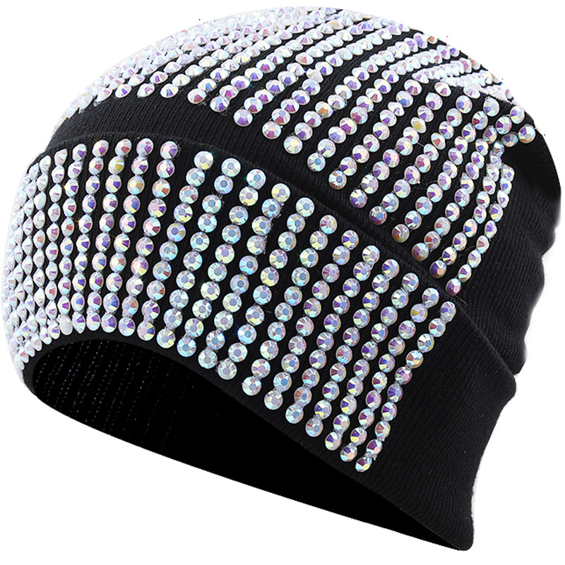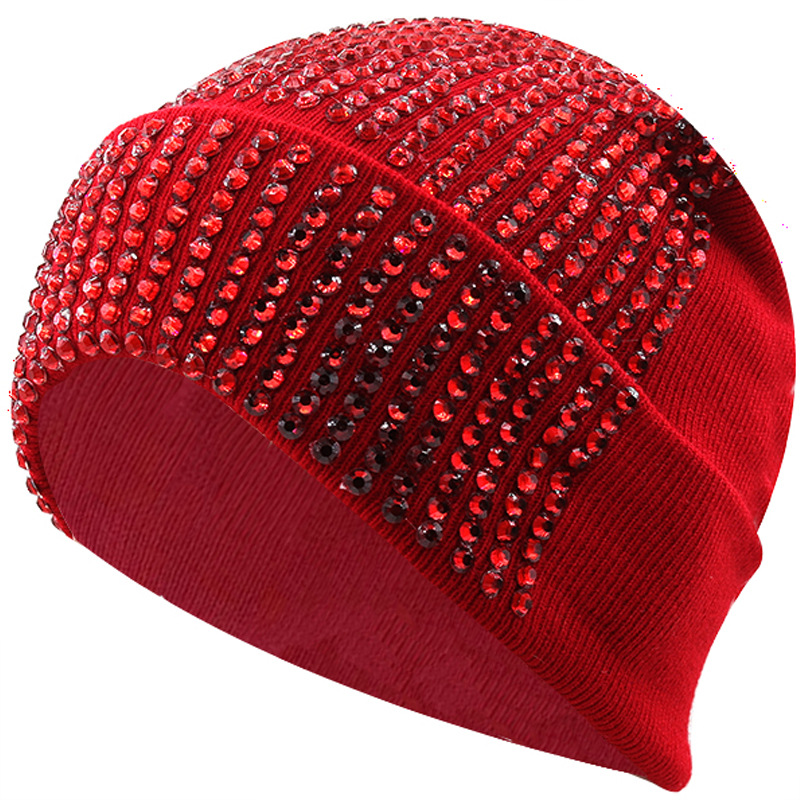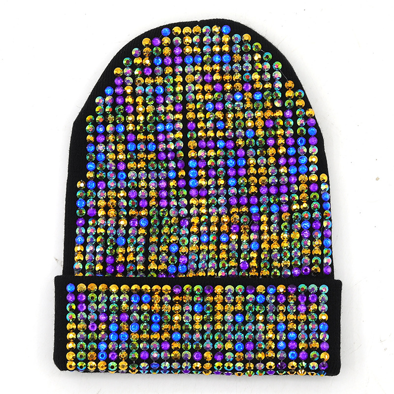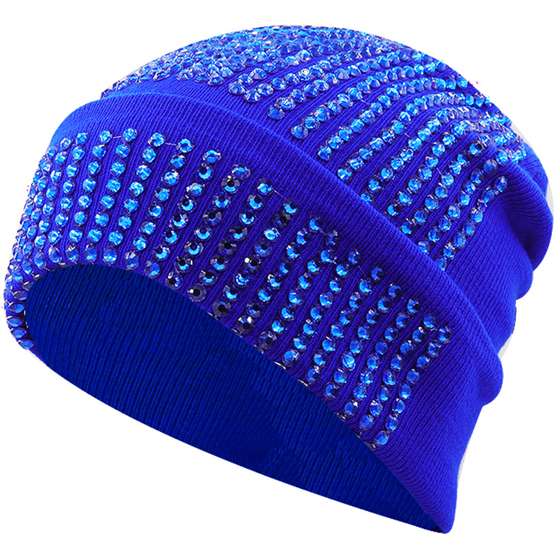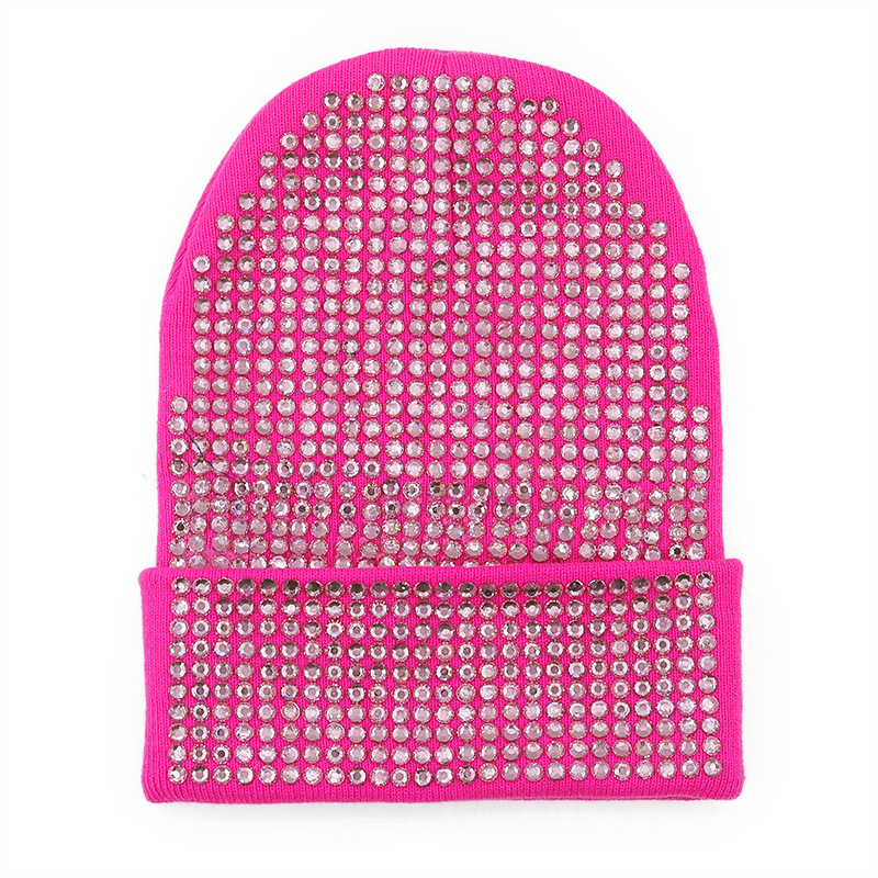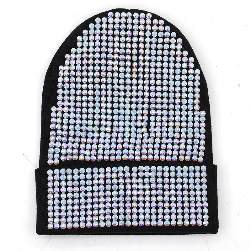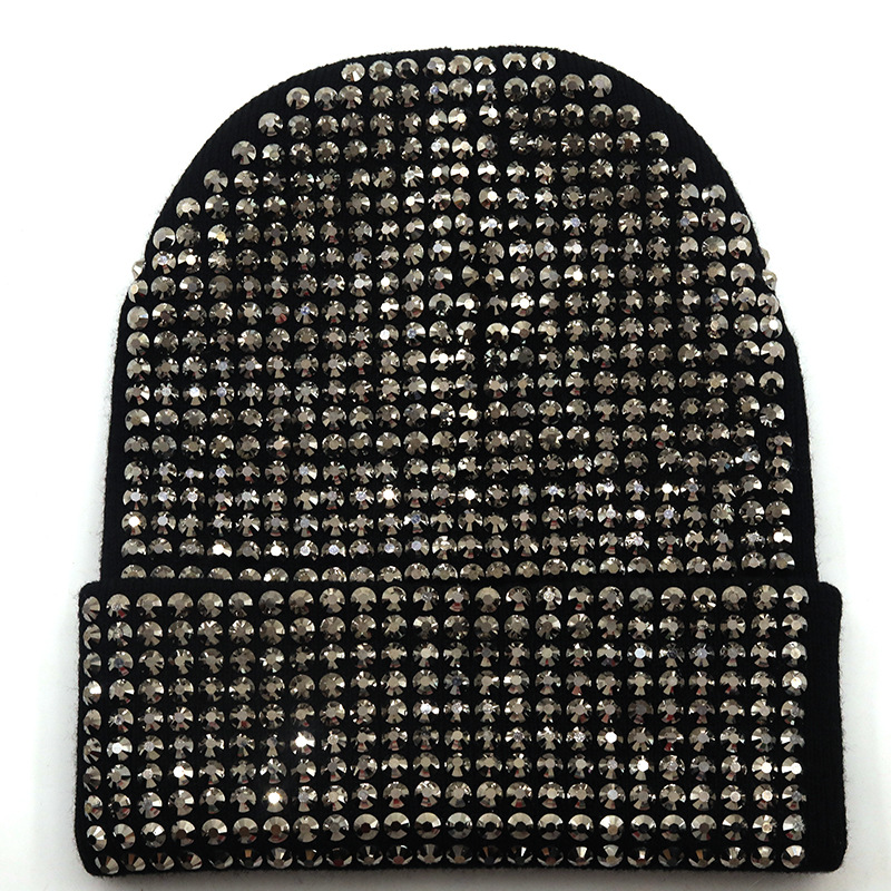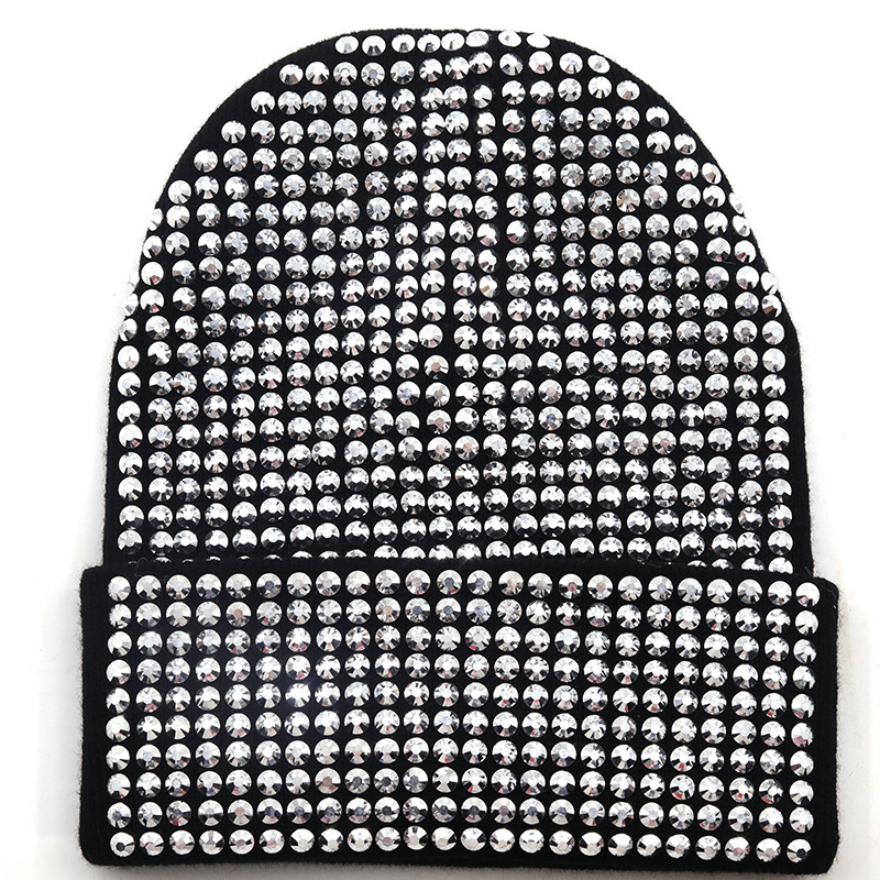Punk Rhinestone Warm All-matching Acrylic Knitted Drill Cap